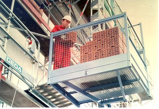 Bezpieczna praca tych urzadzeń możliwa jest nawet przy 1,5 krotnym przeciążeniu. Sprawdzone maszty stalowe cynkowane ogniowo umożliwiają montaż konstrukcji jezdnej windy towarowej Geda 500Z nawet do wysokości 100 m. Montaż masztu do elewacji prowadzony jest bezpośrednio z pomostu roboczego. Furty proponowane przez producenta ECO+ chronią pracowników przed wypadnięciem na poszczególnych przystankach a zintegrowane pulpity sterownicze pozwalają na sterowanie urządzeniem z każdego poziomu.