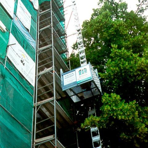 Winda towarowa zębatkowa Geda 500 Z ze względu na swoje możliwości transportowe i prostą budowę sprawdziła się na wielu budowach. Jej obszerny pomost roboczy o udźwigu do 500 kg umożliwia przewożenie dwóch taczek lub też dużej palety z materiałami budowlanymi.