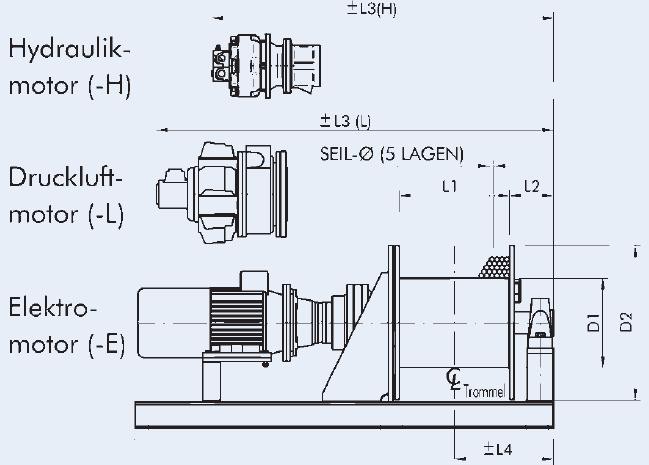 Wciągarka wyposażona jest w orbitalny lub promieniowy tłokowy silnik hydrauliczny wraz z zaworem hamulca.