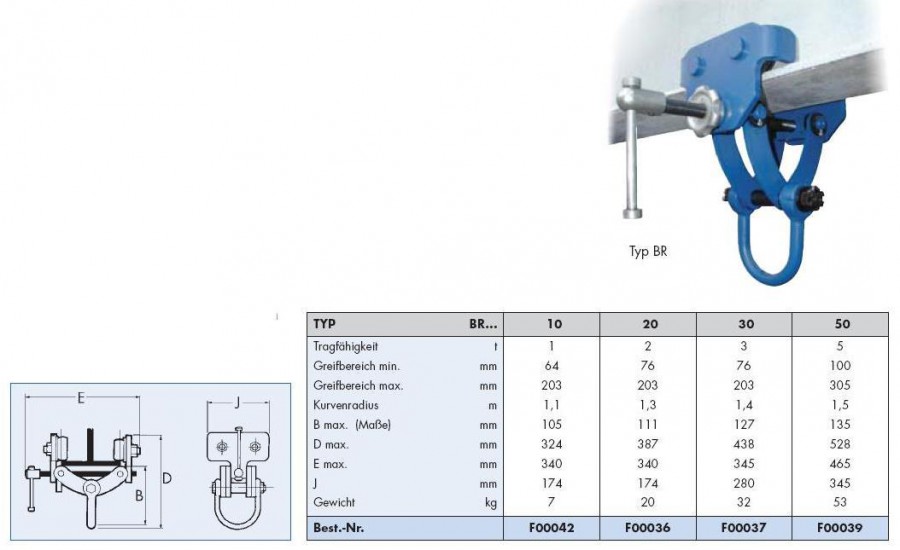 Zastosowanie mobilnego i bezpiecznego w użyciu zacisku szcąkowego do szybkiego montażu może zastąpić wózek przejezdny. Zaciski BR Altus charakteryzują się krótkim czasem montażu i demontażu oraz solidną stalową konstrukcją oraz ocynkowanym trzpieniem. Zawiesie szczękowe nie posiada napędu łańcuchowego może być jedynie wleczone.