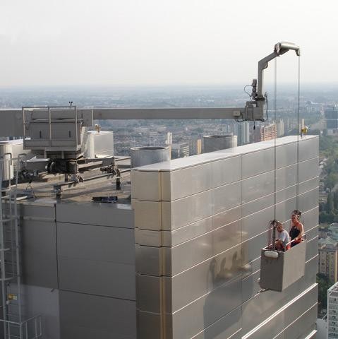 Urządzenia do obsługi fasad firmy GEDA pracują na wielu wysokich budynkach na całym świecie. Zastosowanie tego typu urządzenia pozwala na okresowe czyszczenie, obsługę techniczną fasdy budynku czyli np. konserwację jej elementów wymianę części szklanych oraz zabezpieczenie antykorozyjne itp.